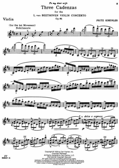 Kreisler Three Cadenzas to the Beethoven Violin Concerto Op.61 for Violin Solo