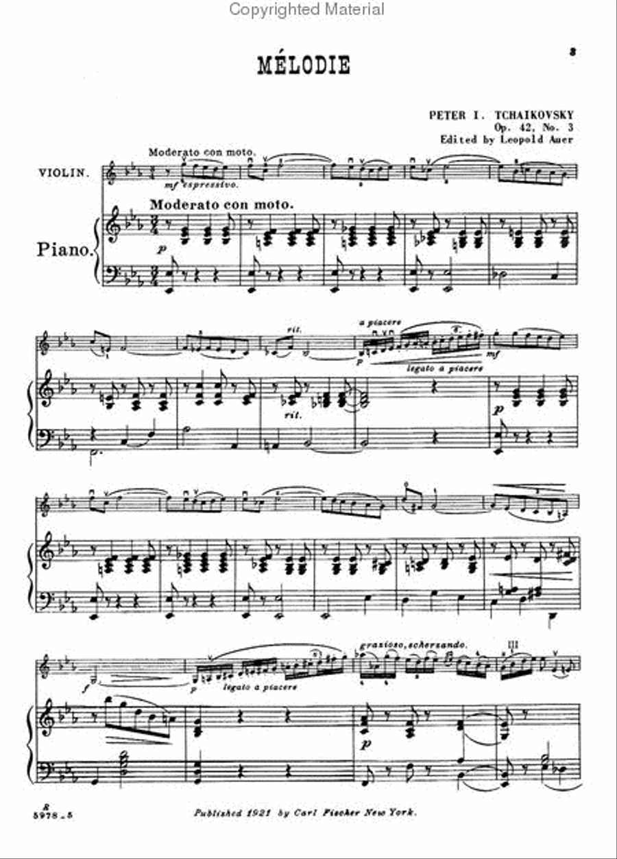 Tchaikovsky Melodie Op.42, No.3 for Violin and Piano