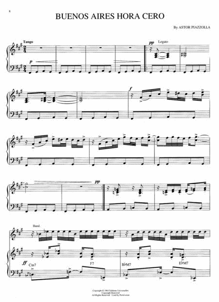 아르헨티나의 작곡가 아스토르 피아졸라(Astor Piazzolla)의 탱고 곡들을 피아노 독주용으로 편곡한 악보집