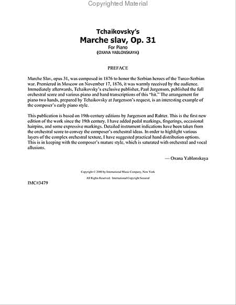 Tchaikovsky Marche Slav (Slavonic March) Op.31 for Piano Solo