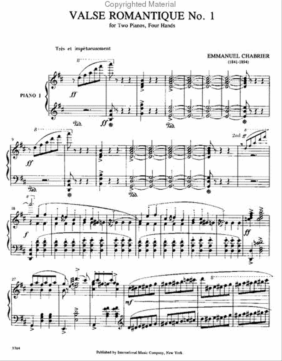 [특가상품] Chabrier Valse Romantique No.1 for 2 Pianos 4 Hands