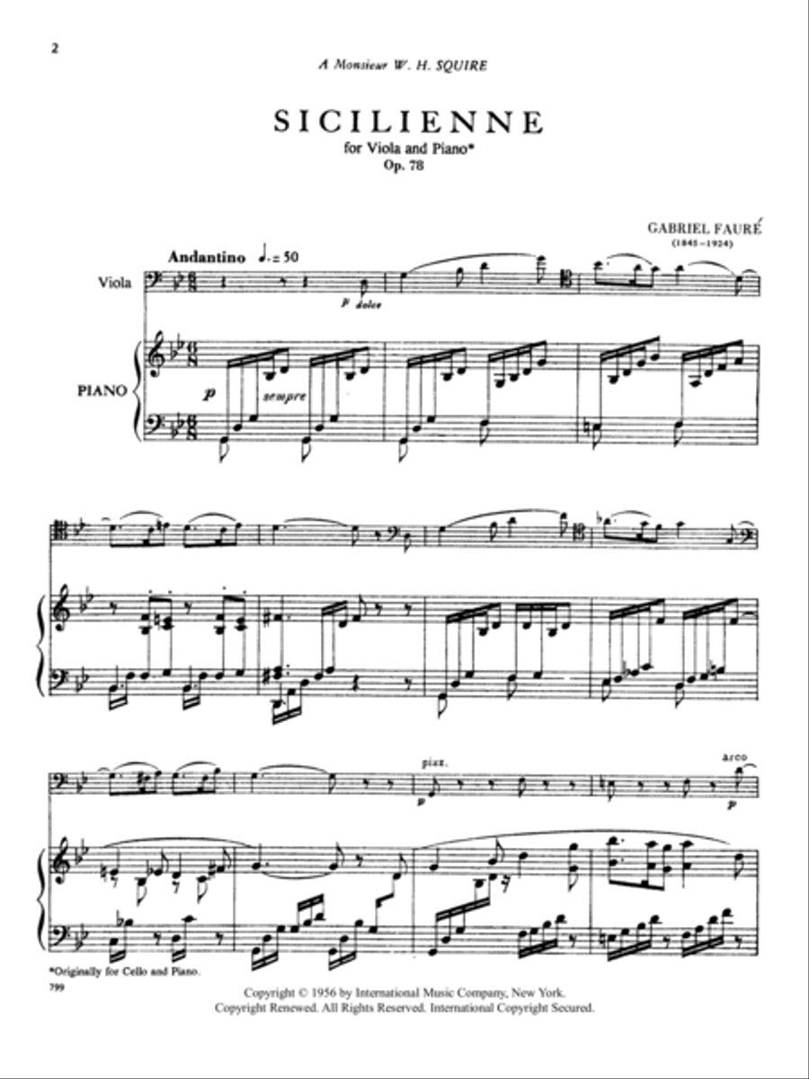 Faure Sicilienne, Op. 78 for Viola and Piano