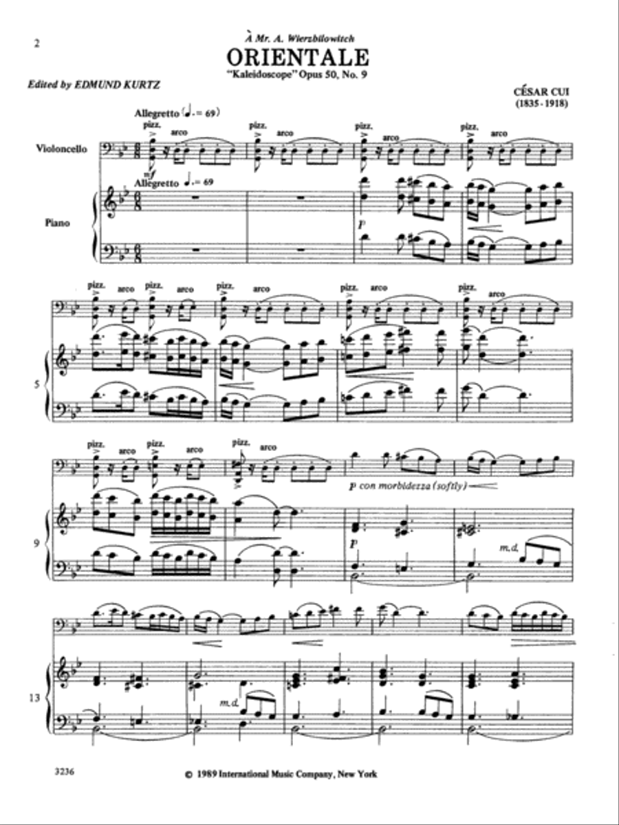 Cui Orientale (Kaleidoscope - Op.50 No.9) for Cello and Piano