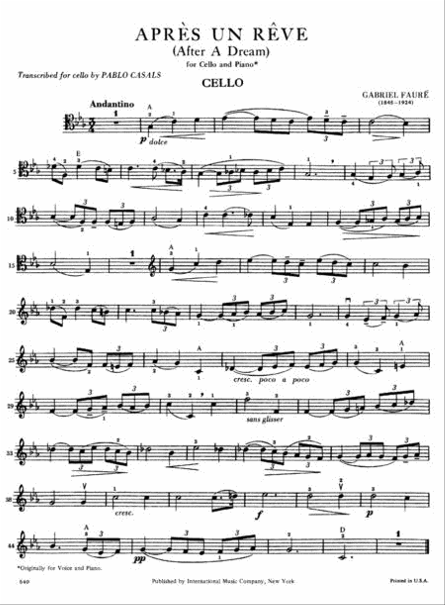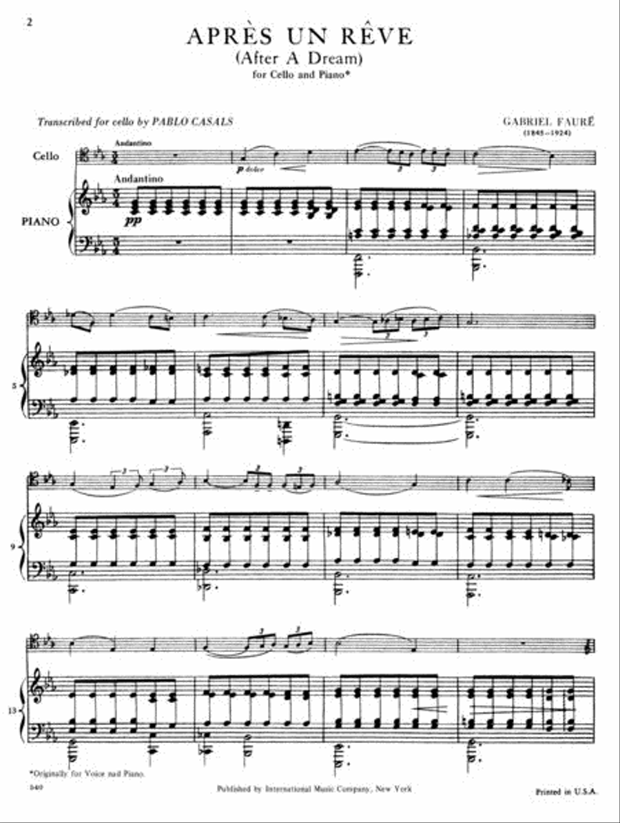 Faure Apres un Reve (After a Dream) for Cello and Piano