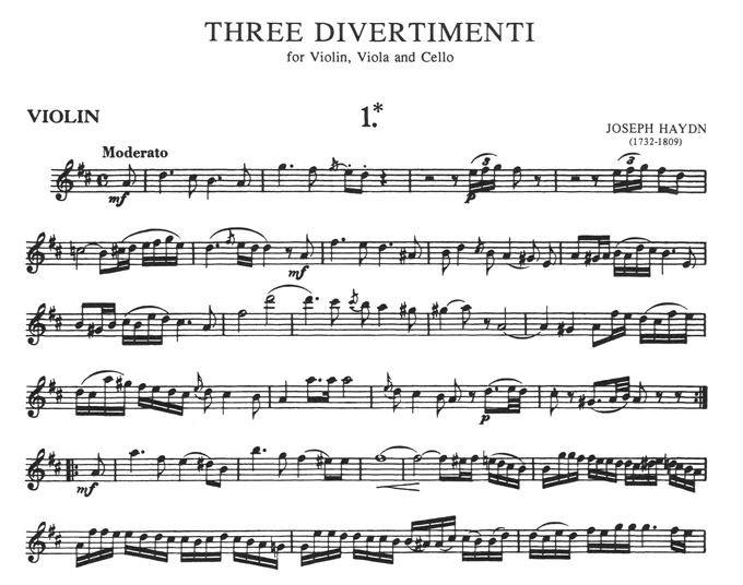 Haydn Three Divertimenti for Violin, Viola and Cello