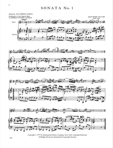 Leclair Sonata in e minor Op.2 No.1 for Flute (violin) and Piano