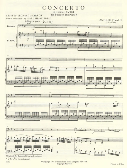 Vivaldi Concerto in E minor RV 484 for Bassoon and Piano