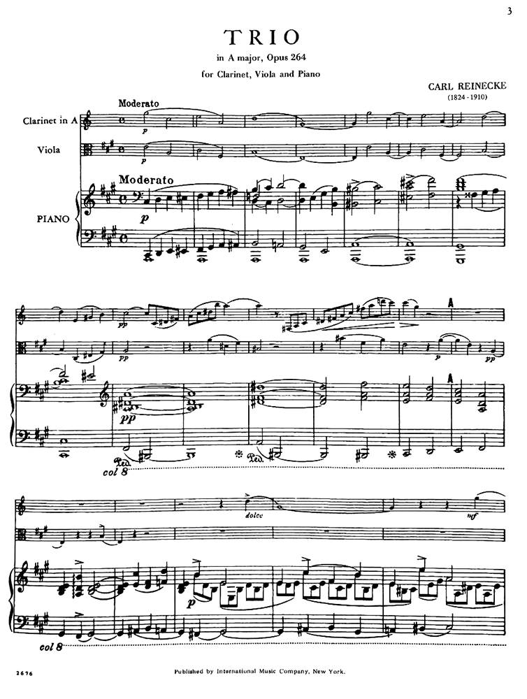 라이네케 클라리넷 비올라 피아노를 위한 트리오 In A Major, Opus 264