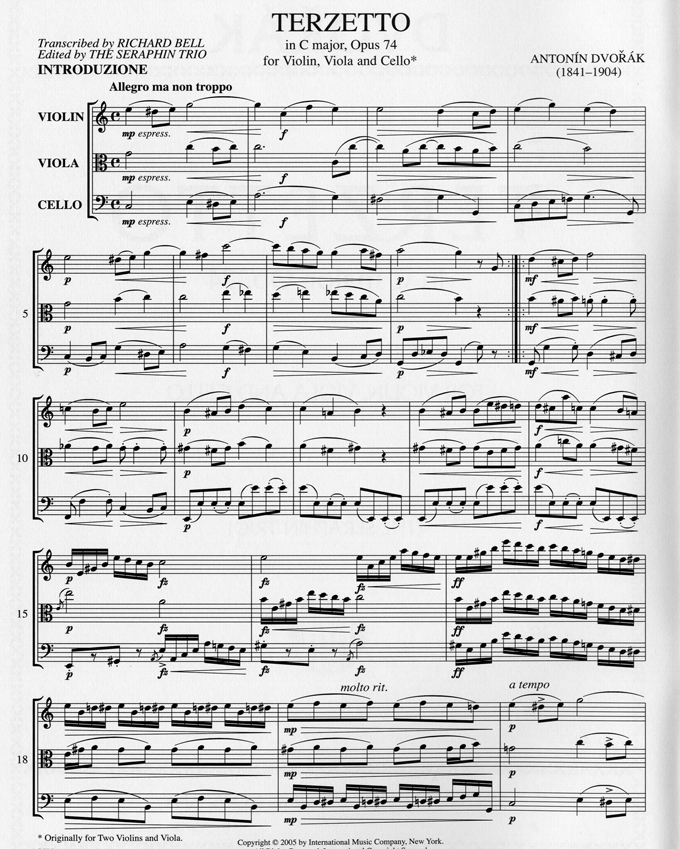 Dvorak Terzetto in C Major Op.74 for 2 Violins and Viola