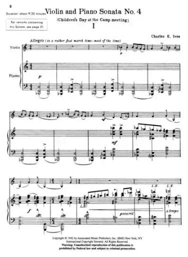 Ives Sonata No.4 Childrens Day at the Camp Meeting for Violin and Piano