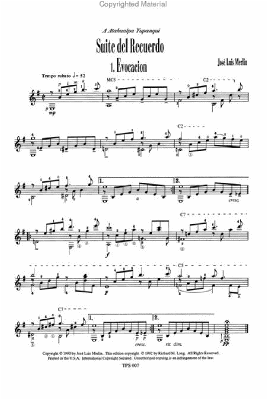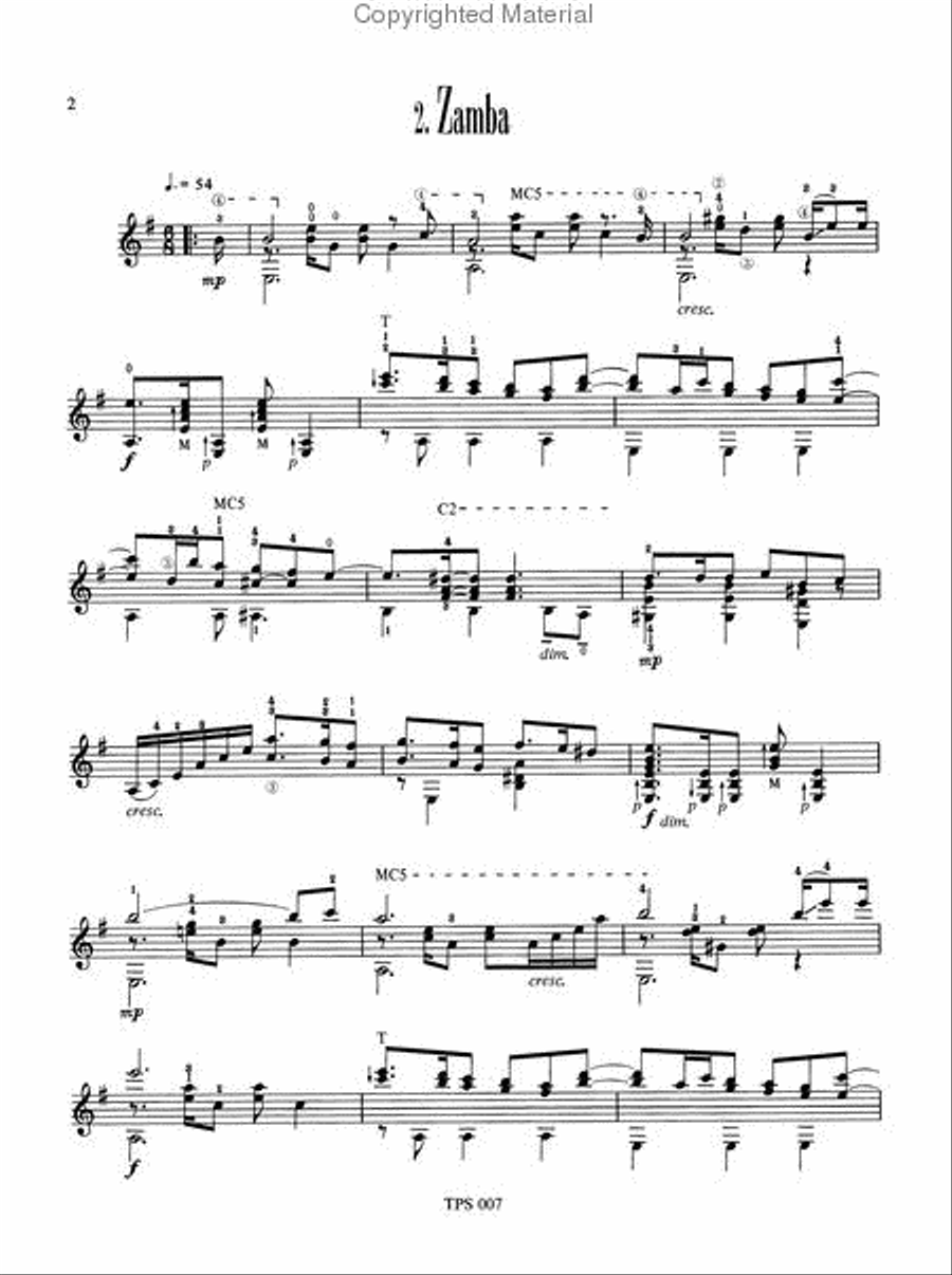 저는 중급 수준의 연주자입니다(8점 만점에 6점 정도). 아직 곡들을 배우고 있지만, 곧 배울 수 있을 거라는 확신이 듭니다. 다섯 곡 중 네 곡은 G 또는 Em 키로 되어 있어서 연주하기 쉽습니다. Joropo는 E 키입니다. 자세한 설명이 있어서 초견 실력을 향상시키는 데 정말 도움이 되었습니다. 이 모음곡에는 훌륭한 기타 연주 기법들이 많이 담겨 있어 여러분의 연주 도구 상자에 꼭 넣어 두어야 할 좋은 도구입니다. 어떤 곡에도 트레몰로가 없지만, 프리트레몰로라고 할 만한 기법이 사용됩니다. 한동안 연습해 보니, 별다른 노력 없이도 트레몰로가 향상되었습니다. 라스게아도(Rasgueado), 빠른 플랜팅(planting), 반사 아르페지오(reflex arpeggio), 그리고 빠른 피-피-피-피 런(p-i-p-i-p-i run)은 이러한 기법들을 쉽게 연습할 수 있도록 활용됩니다. 음악은 개방현이 많이 사용되어 매우 기타적인 느낌을 줍니다. 재미있고, 연주하는 게 정말 신나요. 이 곡들을 배우는 데 시간을 들이는 게 바로 제가 다음 단계로 나아가는 데 꼭 필요한 일이라고 확신해요.