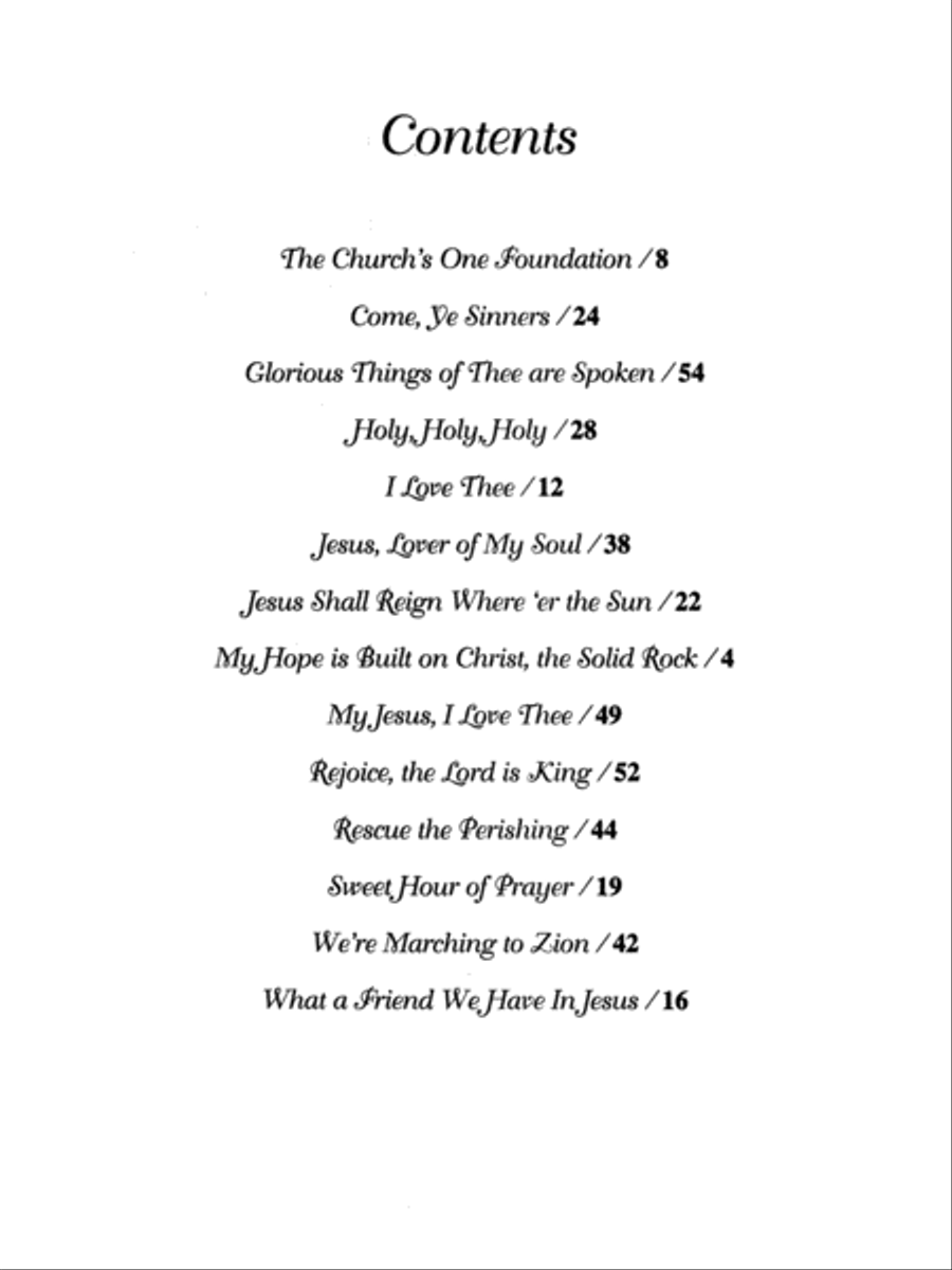 조이스 존스의 탁월한 기교는 14곡의 친숙한 찬송가를 감동적이고 흥미진진하게 편곡한 이 곡들에서 드러납니다. 어떤 곡은 다른 곡보다 더 많은 연습이 필요하지만, 모든 곡이 예배에 영감을 더할 것입니다. 어떤 곡이든 훌륭한 독주곡이 될 것입니다. "거룩, 거룩, 거룩, 기뻐하라", "주님은 왕이시니", "예수 안에서 우리의 친구가 되신" 등 많은 사람들이 좋아하는 곡들이 수록되어 있습니다.