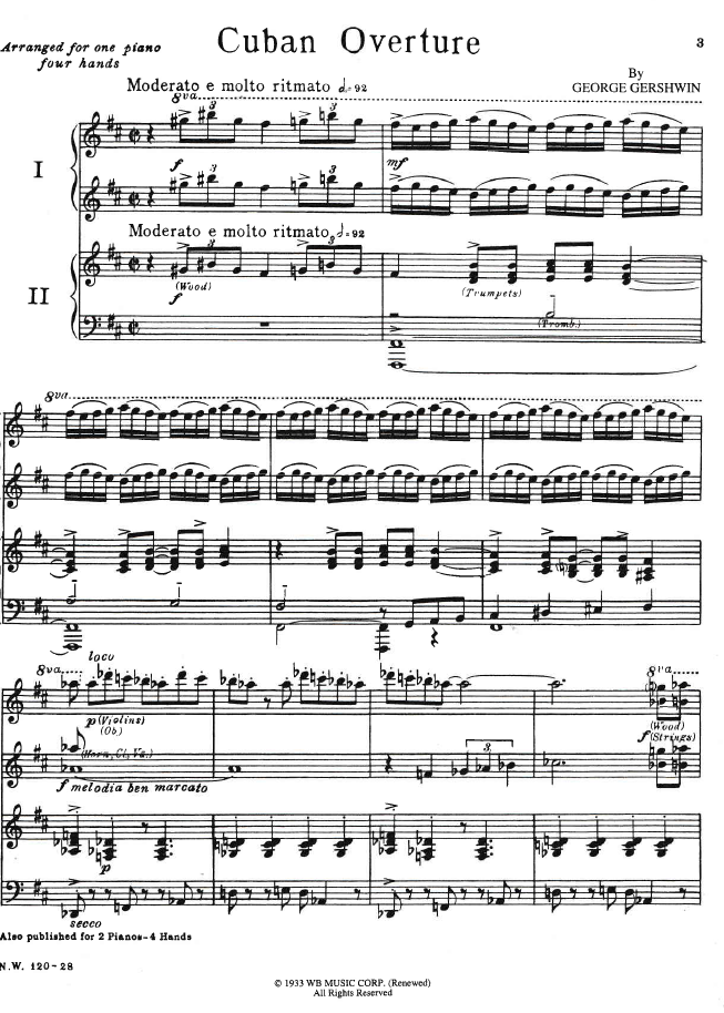 Gershwin Cuban Overture for 2 Pianos 4 Hands