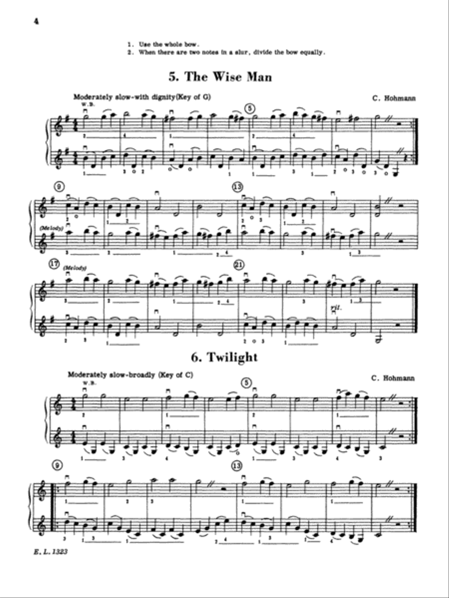 The study of string instruments should include ensemble playing at the earliest possible stage. There is much to be gained from the playing of duets. Each player learns how to listen to the other, and in a short time develops an awareness of balance, musical phrasing, intonation, and tone quality. This type of training is excellent preparation for participation in large groups. These four volumes of duets for two violins will help fill the need for early ensemble experience in the public schools. They should be used in string classes as a supplement to any of the standard string methods. They will also encourage music-making outside of the school, with parents or with other students. These duets are ideal for recitals in the public schools and in public school festivals. they may be played by two performers, or by multiple performers on each part, with or without piano accompaniment