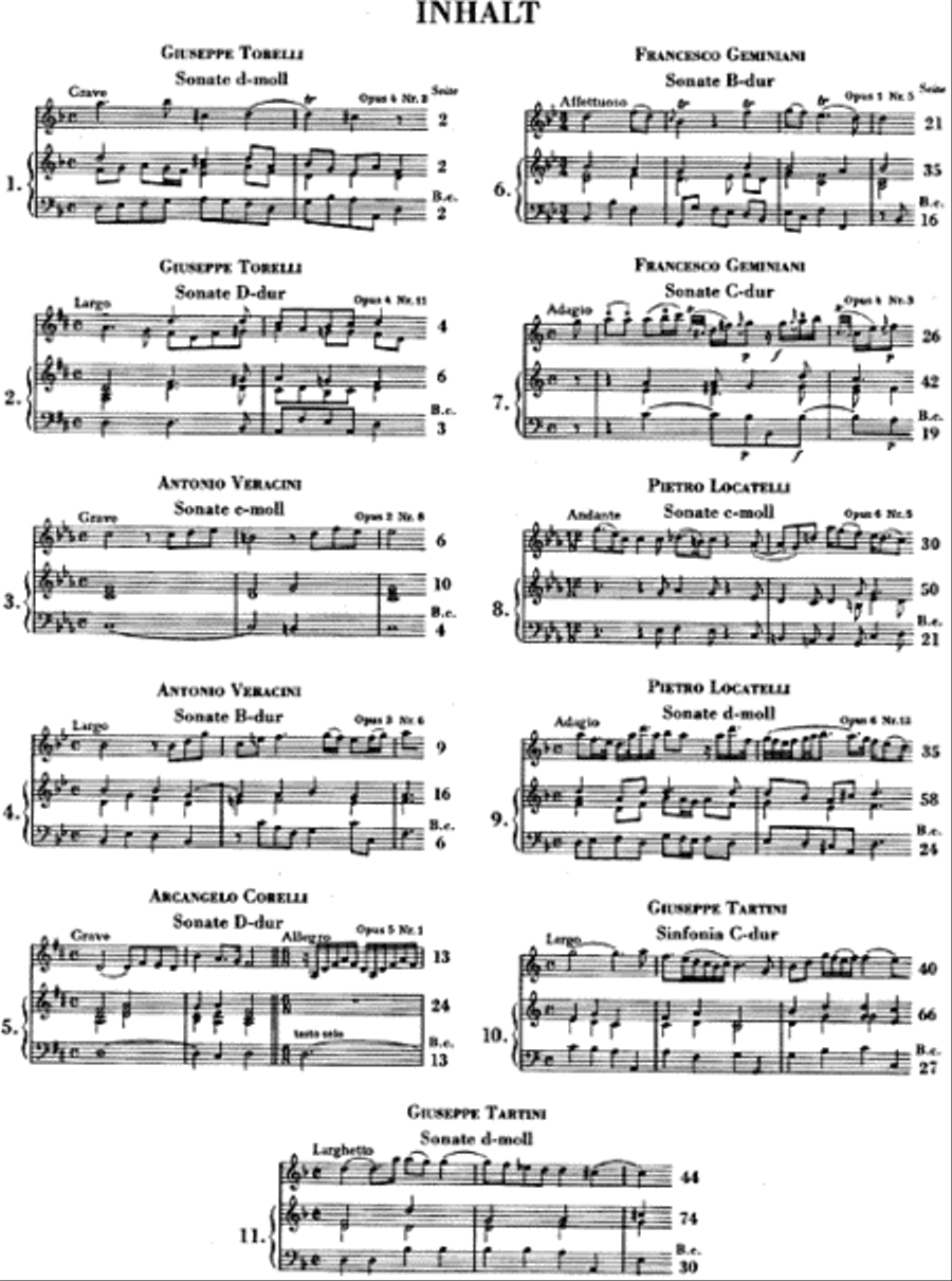17세기 초 이탈리아에서 탄생한 독주 소나타들은 기악의 기교와 바로크 사상의 새로운 자극을 보여줍니다. 바로크 시대 이탈리아 바이올린 음악을 담은 이 흥미로운 전집을 위해 곡을 선정할 때 이러한 두 가지 측면을 모두 고려했습니다. 1권은 두 그룹에 집중합니다. 한편으로는 로마의 코렐리, 볼로냐의 토렐리, 피렌체의 베라치니에 집중하고, 다른 한편으로는 이탈리아 바로크 작곡가의 마지막 세대를 대표하는 세 명의 유명 작곡가, 제미니아니, 타르티니, 로카텔리에 집중합니다. 이들의 영향력은 파도바에서 암스테르담을 거쳐 영국까지 뻗쳤습니다. 모든 작품은 원전을 바탕으로 편집되었으며, 검증된 원전(Urtext) 방식으로 이러한 바로크의 보물들을 명확하게 보여줍니다. 서문에는 연주 연습과 통주저음 연주에 대한 설명이 담겨 있으며, 다양한 악보 목록이 이 풍부한 연구를 바탕으로 한 원전(Urtext) 전집의 마무리를 장식합니다.