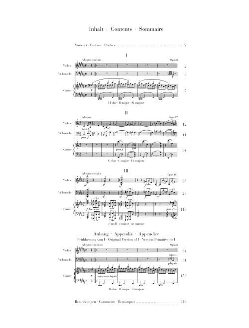 Piano trios belong among the great genres of Classical chamber music, and Brahms , too, turned his attention to this genre early on. He wrote his opus 8 in fall and winter 1853/54, thus at the age of 20. The two other piano trios were created 28 years later, namely op. 87 in C major, and 32 years later, op. 101 in c minor. Brahms was working on another Trio, in E flat major, at the same time that he was working on the C major Trio; however, it seems to have been destroyed. He returned to his first piano trio in 1889 and revised it so thoroughly that he wrote to Clara Schumann: “I have re-written my B major trio.” The Henle Urtext edition reproduces the second version of the Trio op. 8 (published in 1891) first, then follows this up with a reprint of the first version in its Appendix.