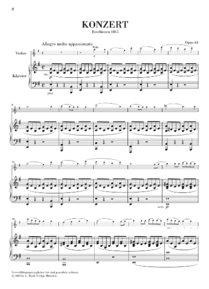이 유명한 협주곡이 처음으로 원전 비평판에 실립니다. 울리히 샤이델러는 작품의 발전 과정을 묘사하고, 원전을 설명하며, 악보에 대한 해설을 제공합니다. 저명한 바이올리니스트 이고르 외짐은 멘델스존이 인정한 바이올린 파트에 오늘날 연주자들에게 도움이 될 운지법과 보잉 마크를 추가했습니다. 그는 또한 멘델스존의 친필 악보에 이미 솔로 파트를 구성하는 데 유용한 제안이 담겨 있음을 보여주는 별도의 해설을 제공했습니다. 초판에 첨부되었던 피아노 리덕션을 수정한 버전인 이 리덕션은 원곡에 최대한 충실하면서도 연주자의 손길이 닿지 않는 곳에 있습니다.