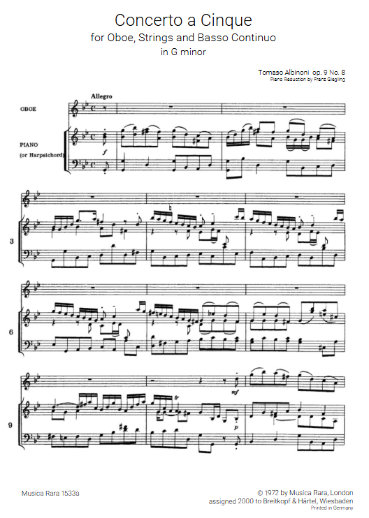 Albinoni Concerto a 5 in g minor Op.9 No.8 for Oboe and Piano