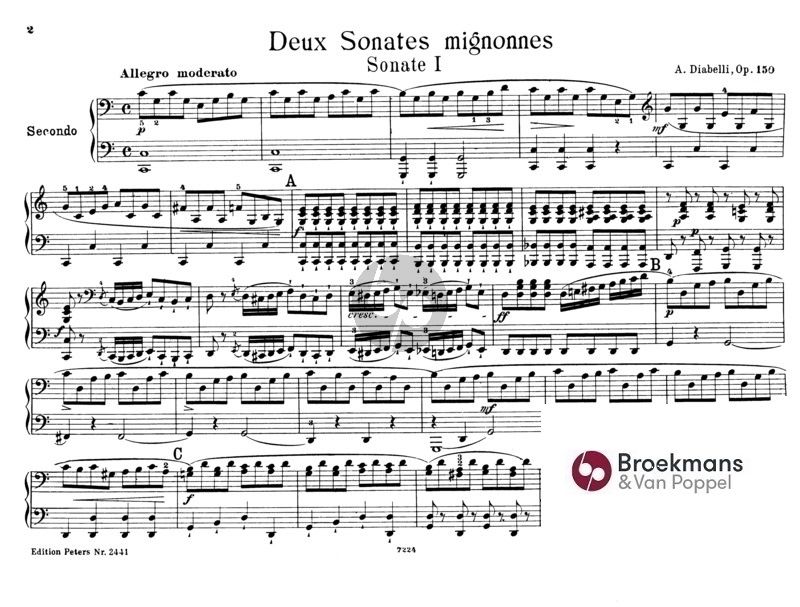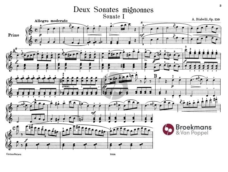 Diabelli 2 Short Sonatas in C, G Op.150 Rondo Militaire in D Op.152 for Piano 4 Hands