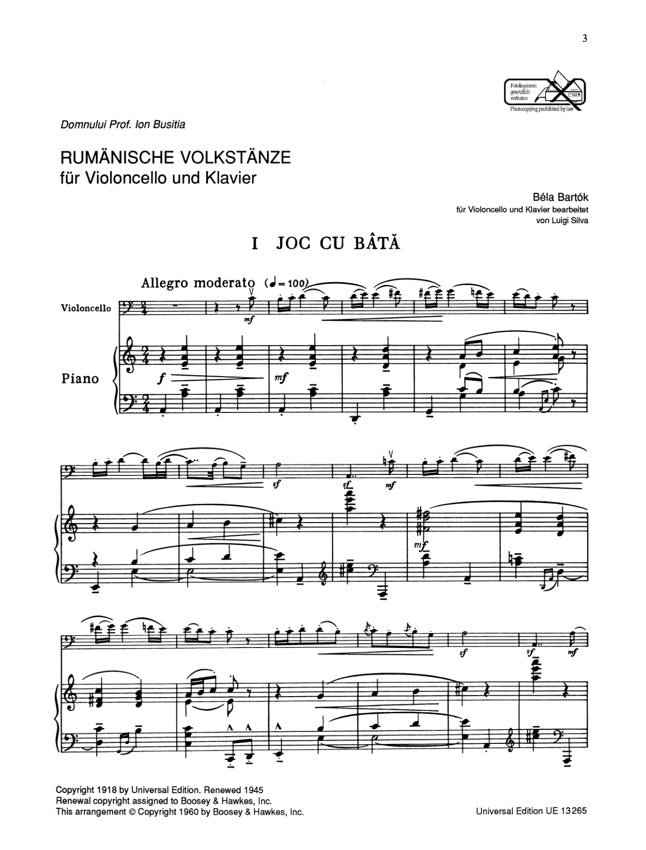 이 음악 자료는 바르톡의 민속 음악 컬렉션에서 유래되었는데, 이 컬렉션은 1904년 헝가리 시골 소녀가 부른 멜로디를 기록한 것으로 거슬러 올라갑니다. 바르토크는 동유럽 전역을 광범위하게 여행하며 방대한 민요 선집을 편찬했습니다(1918년까지 그의 선집에는 헝가리 2,700곡, 루마니아 3,500곡, 슬로바키아 3,000곡의 무곡과 노래가 수록되어 있었습니다). 만약 바르토크가 직접 기록하지 않았다면 이 곡들은 아마도 사라졌을 것입니다. 하지만 실제로는 그중 일부가 그의 작품에 녹아들었습니다. 1908년 바르토크는 트란실바니아의 무곡들을 기록했는데, 이것이 바로 '루마니아 민요'의 기원입니다. (R.K., 서문에서 발췌)