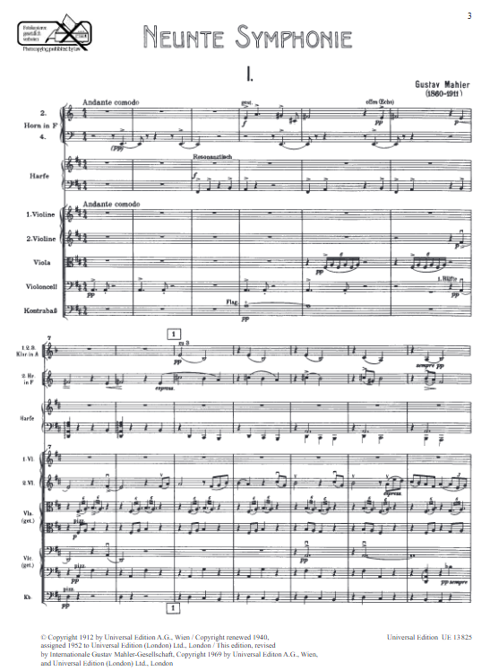 Mahler Symphony No.9 in D major for Full Score - Complete Edition
