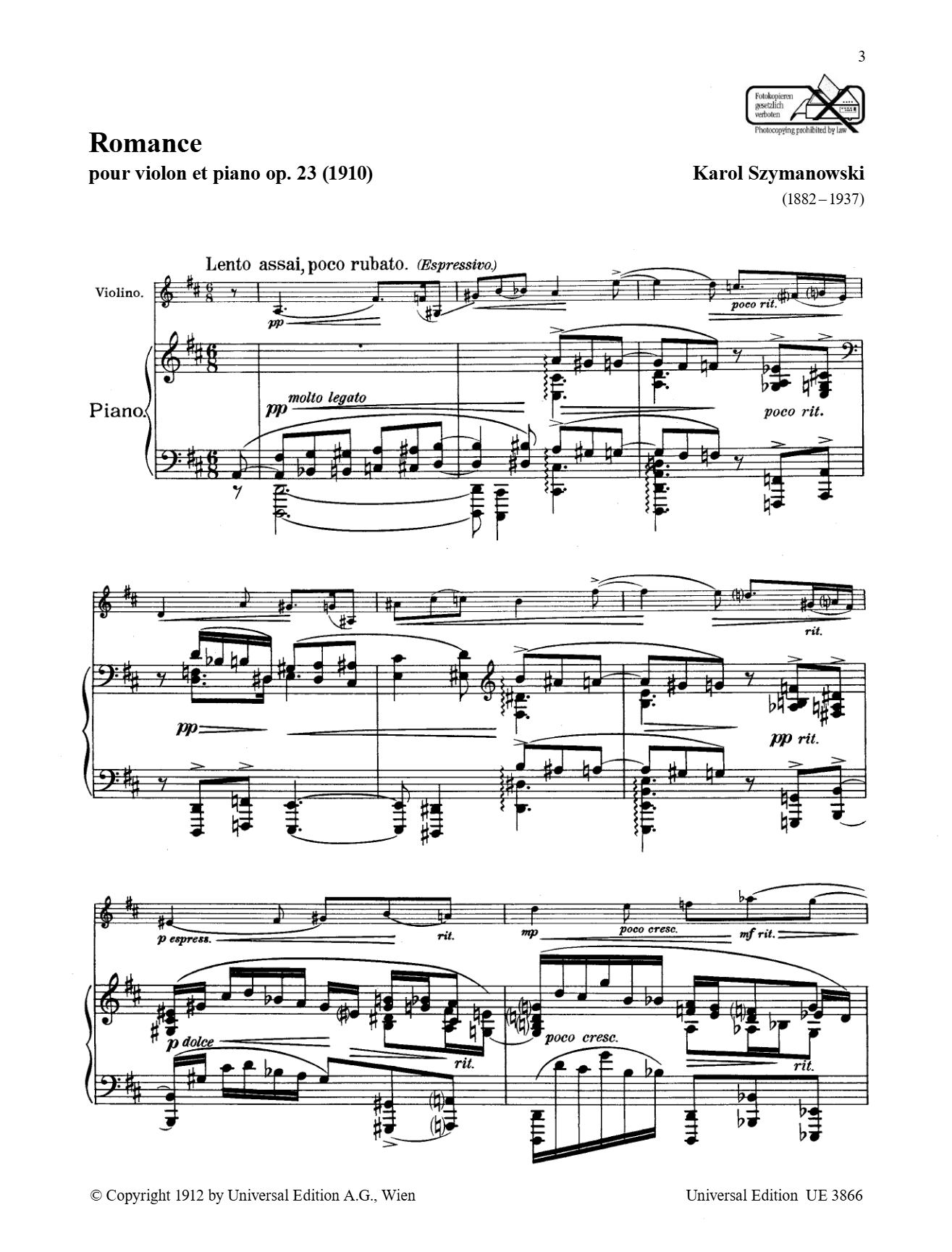 [특가상품] Szymanowski Romance in D major Op.23 for Violin and Piano