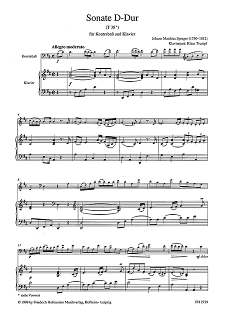 Sperger Sonata D-Dur, T38 for Bass and Piano