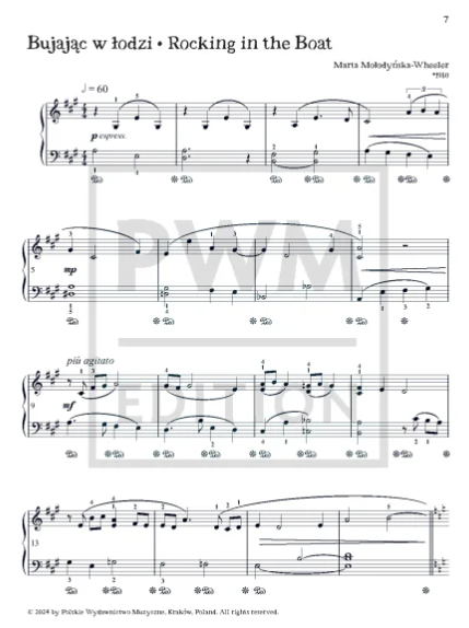 A unique collection of pieces that combines elements of classical and folk music with more accessible styles, such as dance, jazz, and Latin American music. These compositions are primarily aimed at young aspiring pianists who wish to explore various styles of piano music during their studies. As the author emphasizes, this collection offers a variety of "articulation, rhythmic, and harmonic challenges" that are tailored to the early stages of learning the instrument. Overcoming these challenges will result in acquiring new skills and a greater sense of comfort in performing stylistically diverse material.