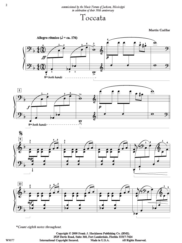 This energetic toccata features bold “3 + 3 + 2” rhythms, along with a contrasting legato B section. Contains a wide range of expression and dynamics