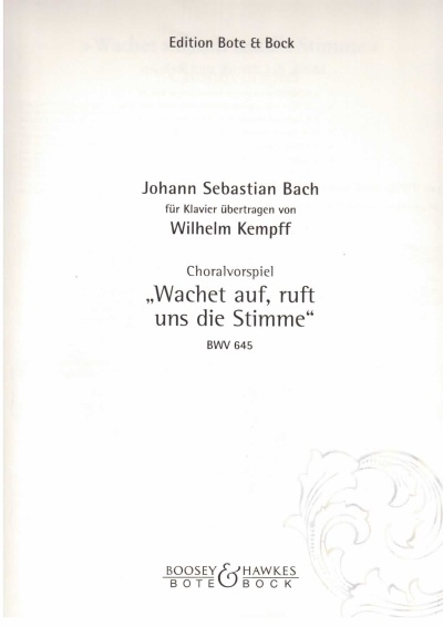 Bach Wachet auf!, ruft uns die Stimme BWV 645 for Piano Solo (arr. Kempff)