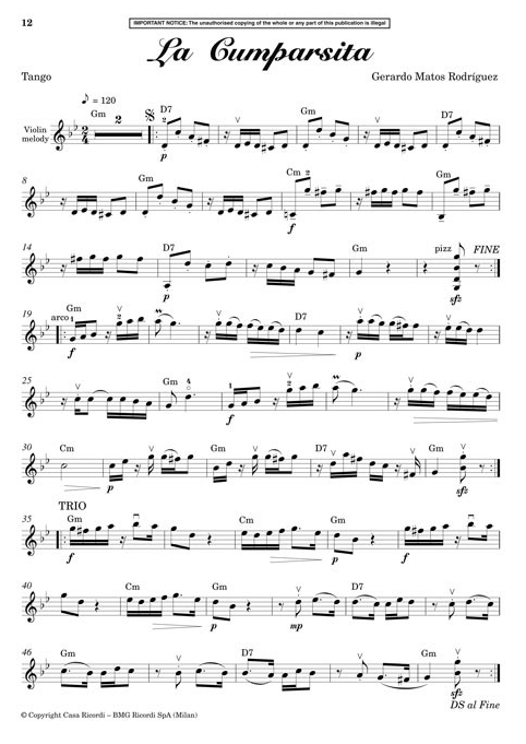 Argentinean tango is the focus for this addition to the popular Fiddler series. Appealing arrangements of sophisticated numbers by tango legends Piazzolla, Villoldo, Arolas, Gardel and others. The music is arranged for flexible strings, so can be played as solos, duets or trios, with optional piano or guitar. Available in two formats: violin edition (with optional easy violin part and guitar chords) and complete edition (includes additional keyboard and violin accompaniments). Suitable for players of all ages, including beginners and mixed ability groups. Includes notes on the musical style, performance tips and evocative illustrations.