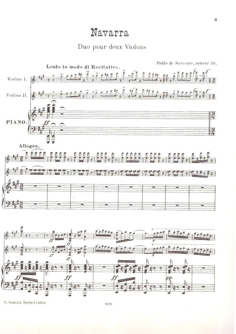Sarasate Navarra Op.33 for 2 Violins and Piano