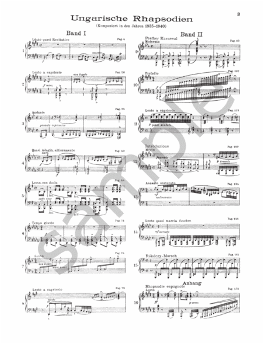 리스트 피아노 작품집 1권을 구성하는 헝가리안 랩소디 2권 중 첫 번째 권입니다. 에밀 폰 자우어가 편집한 이 판에는 랩소디 1번부터 8번까지 수록되어 있습니다.