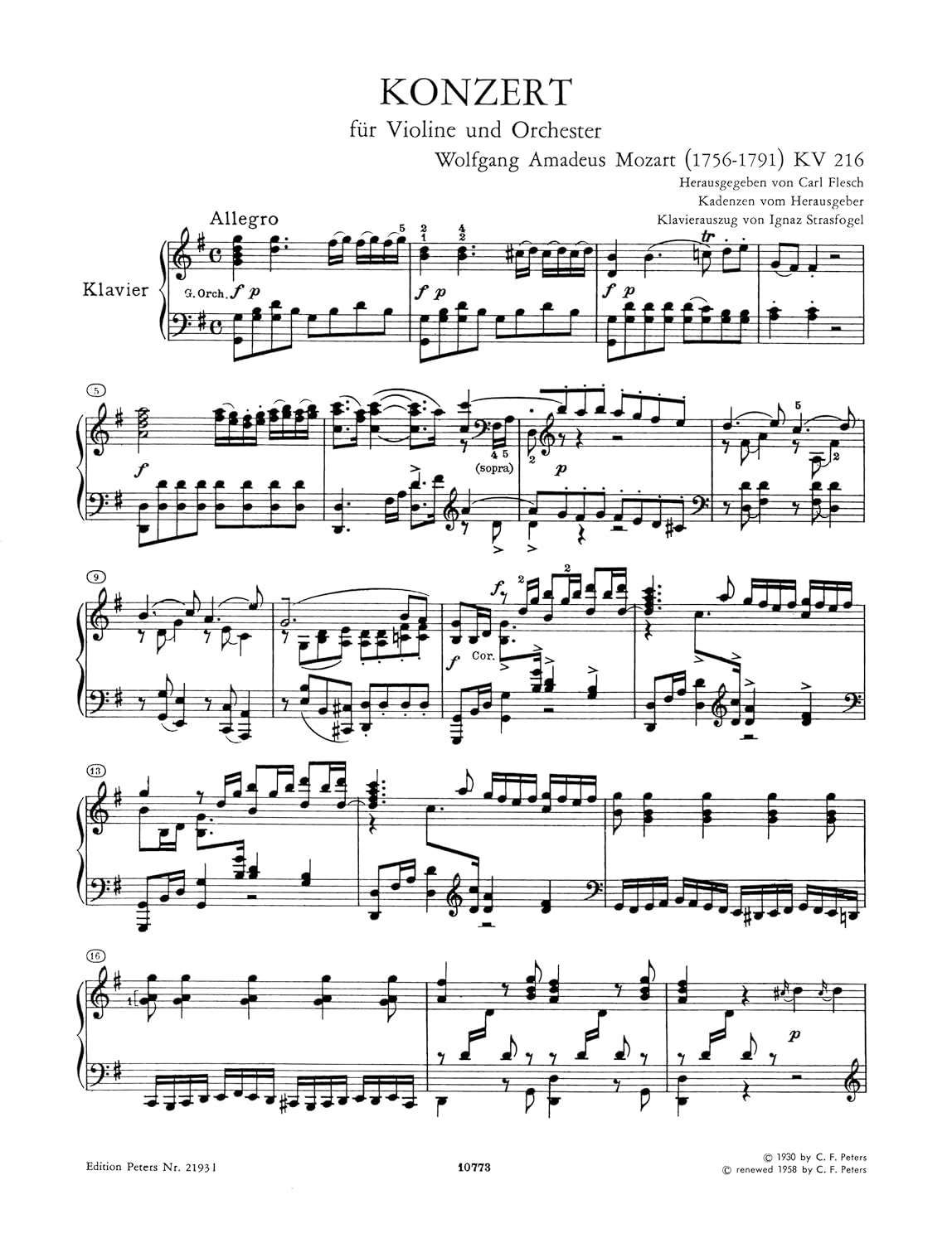 Mozart Violin Concerto No.3 in G Major K.216 for Violin and Piano (Flesch)