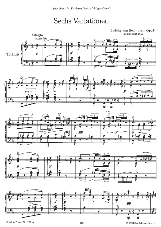 6 Variationen fur Klavier F-Dur op. 34 (1802)