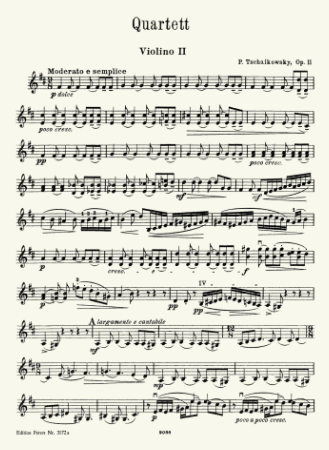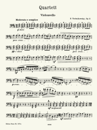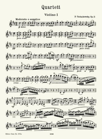 Tchaikovsky Quartet No.1, Op.11 (with Andante Cantabile) for 2 Violins, Viola and Cello