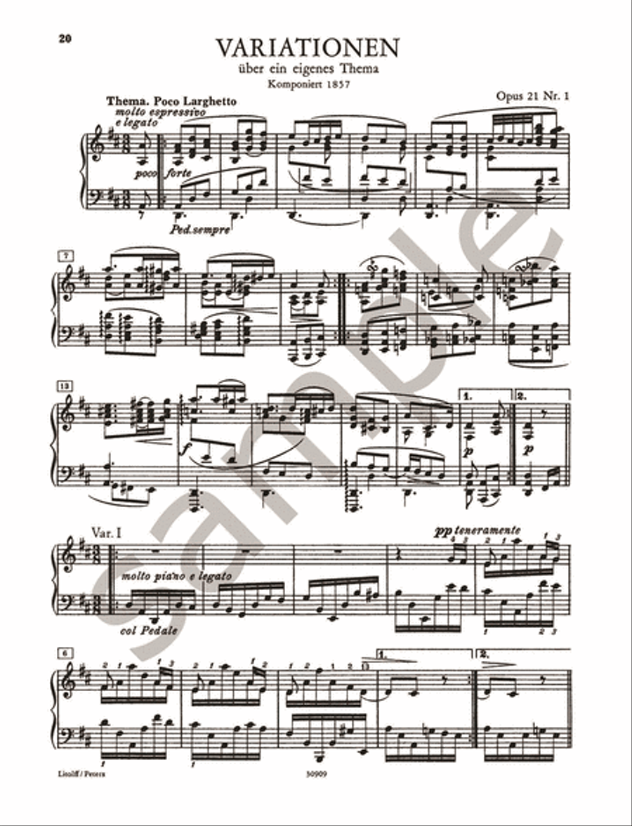 브람스 피아노 작품집 2권에는 다섯 개의 변주곡이 수록되어 있습니다. 이 곡은 단순한 선율과 질감부터 기교적인 브라부라까지, 브람스 작곡의 다채로운 면모를 보여줍니다.