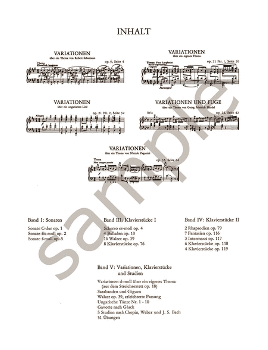 Brahms Piano Works Vol. 2 contains his five sets of variations. This music displays the great variety of Brahms' writing: from simple melodies and textures to virtuosic bravura.