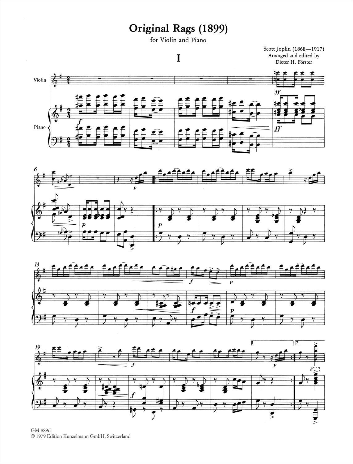 Joplin 6 Ragtimes Vol.1 for Violin (or Cello) and Piano
