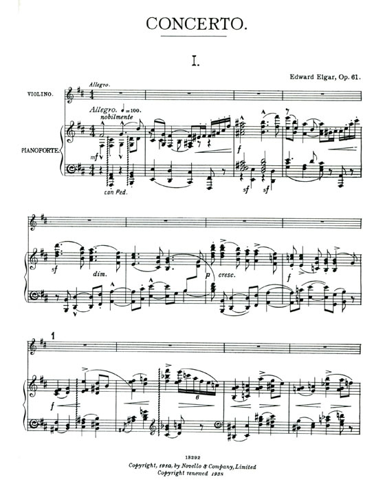 Elgar Violin Concerto in b minor Op.61 for Violin and Piano