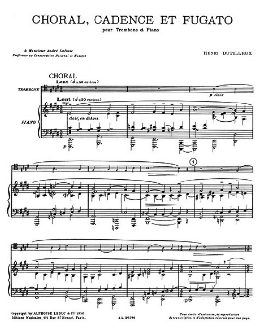 Dutilleux Choral Cadence et Fugato for Trombone and Piano