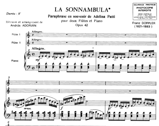 Doppler La Sonnambula Op.42 for 2 Flutes and Piano
