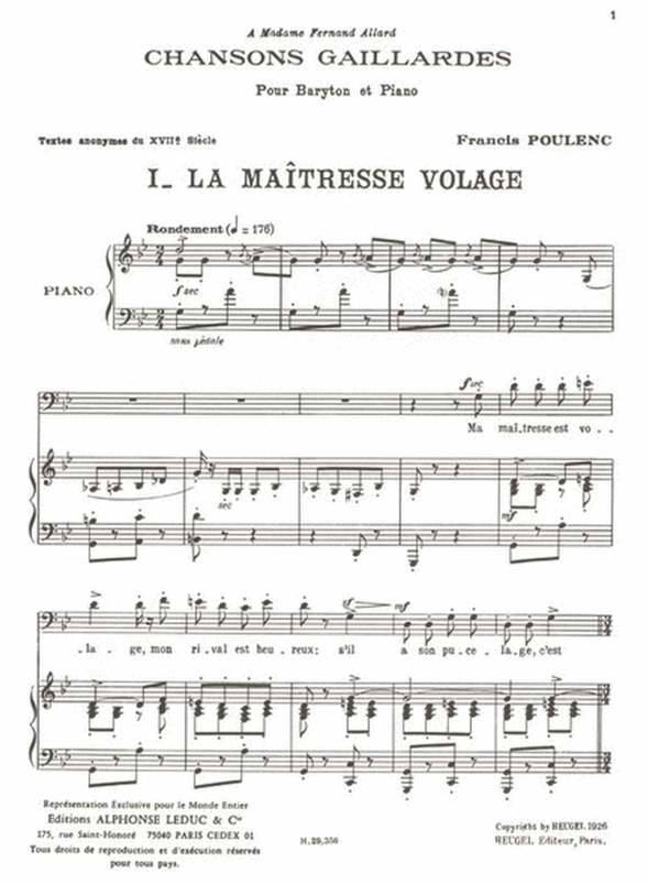 Poulenc Chansons Gaillardes Baryton for Voice and Piano