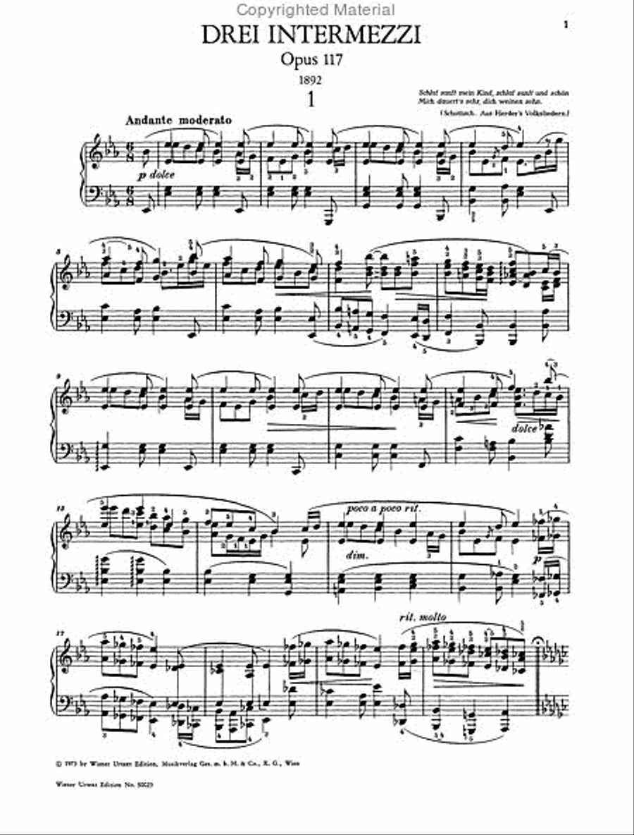 Brahms 3 Intermezzos Op.117 for Piano Solo