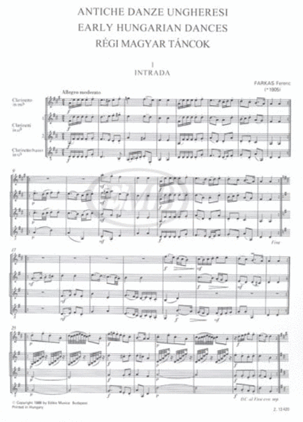Farkas Early Hungarian Dances from the 17th Century for 4 Clarinets