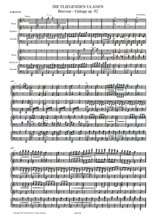 Hause The Flying Lancers Op.92 for 2 Pianos 8 Hands