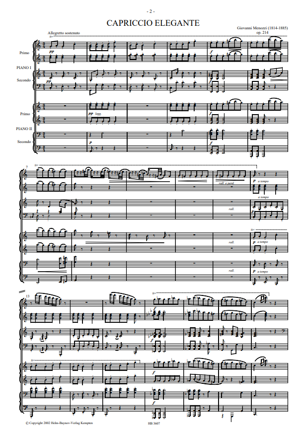 Menozzi Capriccio Elegante Op.214 for 2 Pianos 8 Hands