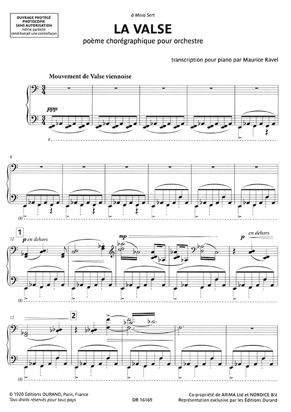 Musique francaise is a series designed for students and teachers offering masterworks in French music, with performance suggestions and historical and stylistic commentary by noted scholars. New engravings, introduction and historical performance notes in English, French, German and Italian. Written between December 1919 and March 1920, Ravel`s La Valse exists in three forms: orchestra, piano solo and two pianos. Advanced Level.