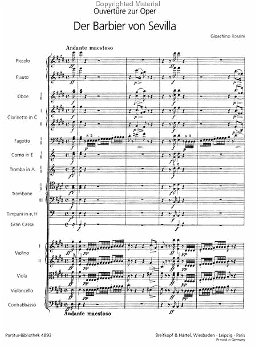 Rossini The Barber of Seville Overture to the Opera Orchestra for Full Score