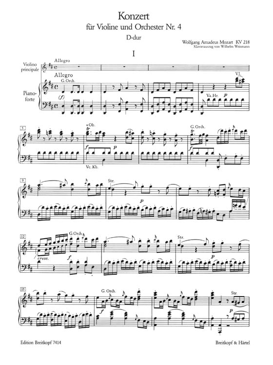 Mozart Violin Concerto No.4 in D Major K.218 for Violin and Piano (Edit.Oistrach)